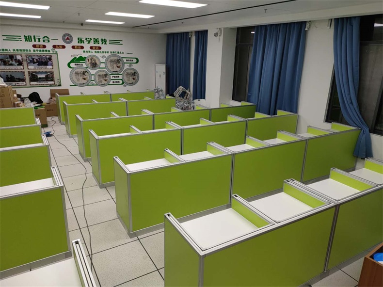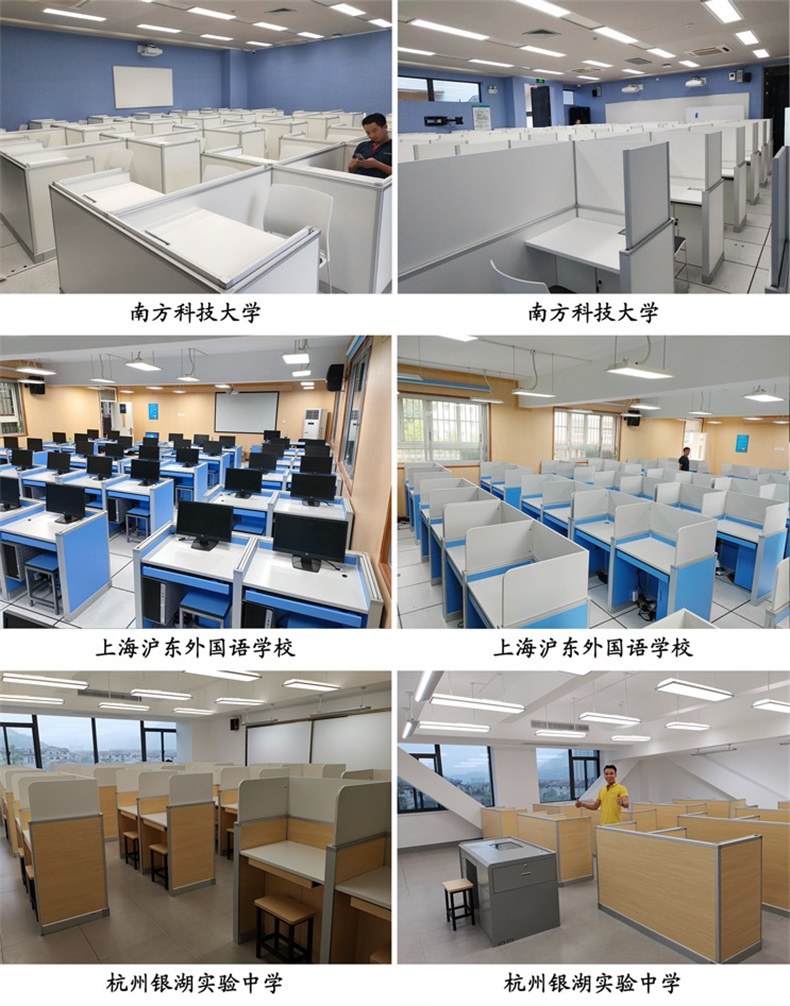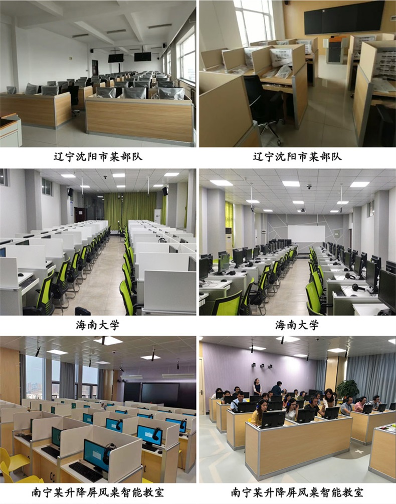 項(xiàng)目地點(diǎn): 河池學(xué)院多功能語音升降屏風(fēng)教室 項(xiàng)目時(shí)間: 2020年9月 主要功能: 根據(jù)河池學(xué)院對教室使用需求,在產(chǎn)品設(shè)計(jì)方面,電腦桌的左、右、前三面帶升降屏風(fēng)擋板,用于隔斷相鄰考生視線。當(dāng)屏風(fēng)升起時(shí),可以用作教室語音標(biāo)準(zhǔn)化考試使用,當(dāng)屏風(fēng)降下時(shí),可以用于學(xué)生上課使用。實(shí)現(xiàn)了一室多用、考學(xué)合一。