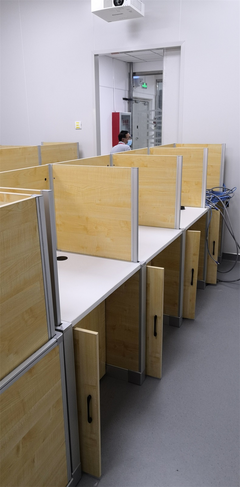 根據(jù)山東青島雀巢有限公司對咖啡品嘗的使用需求,在產(chǎn)品設(shè)計方面,咖啡品嘗桌的左、右、前三面帶升降屏風(fēng)擋板,用于隔斷相鄰品嘗師視線。當(dāng)屏風(fēng)升起時,品嘗師可以單獨品嘗,不受其他品嘗師的干擾,更能客觀給出自己的分?jǐn)?shù);當(dāng)屏風(fēng)降下時,各個品嘗師可以相互討論,研究,調(diào)試更可口的咖啡。實現(xiàn)了一室多用。