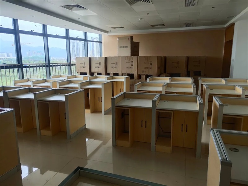 升降屏風語音聽說測試考場是當今教育部門及企業、事業單位教育及考試重要場所,是新型的科技化教學設備和現代化考試形式相結合的培訓及考試設施。升降屏風桌極大地解決了傳統桌子功能單一的缺點。考試時:屏風升起,用于隔斷相鄰考生視線,每個考生即擁有獨立的空間,降低外界噪音干擾,杜絕屏幕窺視;日常上課時:屏風降下和普通的多媒體教室無異。可實現真正意義上的多變空間一室多用。