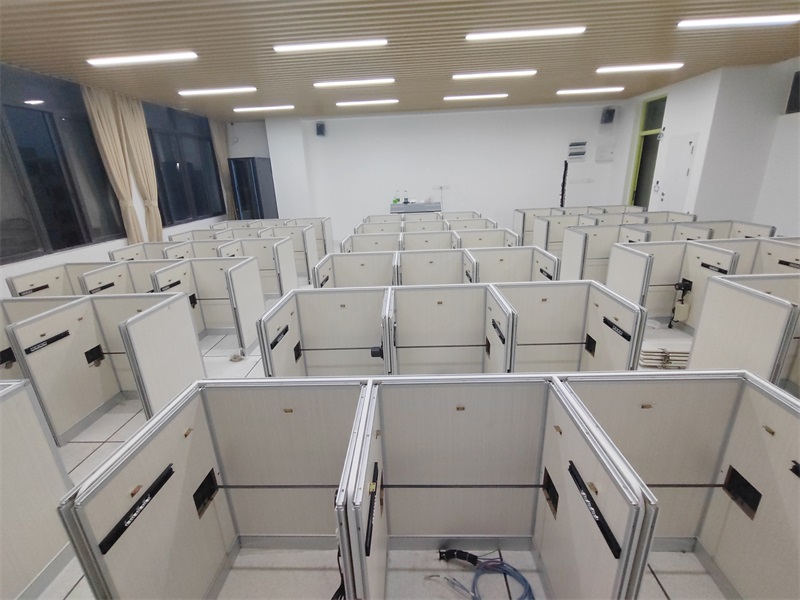 升降屏風(fēng)語(yǔ)音聽說測(cè)試考場(chǎng)是當(dāng)今教育部門及企業(yè)、事業(yè)單位教育及考試重要場(chǎng)所,是新型的科技化教學(xué)設(shè)備和現(xiàn)代化考試形式相結(jié)合的培訓(xùn)及考試設(shè)施。升降屏風(fēng)桌極大地解決了傳統(tǒng)桌子功能單一的缺點(diǎn)。考試時(shí):屏風(fēng)升起,用于隔斷相鄰考生視線,每個(gè)考生即擁有獨(dú)立的空間,降低外界噪音干擾,杜絕屏幕窺視;日常上課時(shí):屏風(fēng)降下和普通的多媒體教室無(wú)異??蓪?shí)現(xiàn)真正意義上的多變空間一室多用。