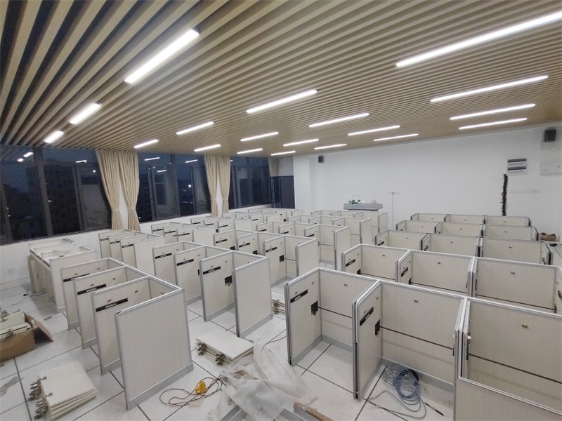根據(jù)深圳市龍華區(qū)行知中學(xué)對(duì)計(jì)算機(jī)室的要求,方方智能為該計(jì)算機(jī)室設(shè)計(jì)了屏風(fēng)可以升降的三人位屏風(fēng)桌。該屏風(fēng)桌采用方方第一代升降屏風(fēng)桌,基礎(chǔ)高度840MM,升起高度1160MM,起到良好的隔斷效果。