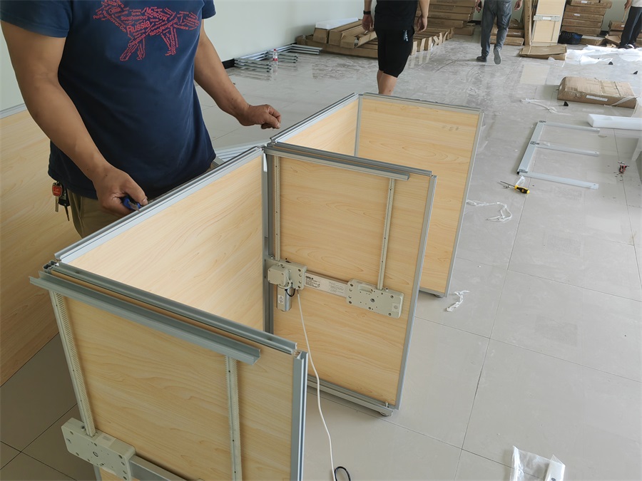 根據國網津市市供電公司的使用需求,方方智能對升降屏風多功能培訓室設計了一套可以升降的智能升降屏風桌,每個座位都有可升降的屏風,考試時屏風升起后可有效的隔斷相鄰人的正常視線,防噪音效果,可達到互不干擾的作用,當屏風降下時,可以用于學生日常上課使用。實現了一室多用、考學合一。